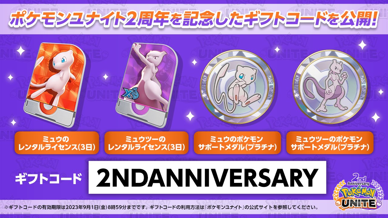 ポケモンユナイトギフトコード一覧 ポケモンユナイト公式ポケモンユナイトギフトコード一覧 onポケモンユナイトギフトコード一覧 X:ポケモンユナイトギフトコード一覧 ポケモンユナイト2周年を記念したギフトコードを公開☀️ポケモンユナイトギフトコード一覧 ポケモンユナイトギフトコード一覧 ミュウとミュウツーのレンタルライセンスとプラチナメダルがもらえるよ!ポケモンユナイトギフトコード一覧 ギフトコードの利用方法はこちらポケモンユナイトギフトコード一覧 t.coWbVYM2yWwhポケモンユナイトギフトコード一覧 ポケモンユナイトギフトコード一覧 ポケモンユナイト2周年ポケモンユナイトギフトコード一覧 ポケモンプレゼンツポケモンユナイトギフトコード一覧 ...ポケモンユナイトギフトコード一覧 Pokémonポケモンユナイトギフトコード一覧 UNITE(ポケモンユナイト)』本日よりメタグロスが参戦!ポケモンユナイトギフトコード一覧 |ポケモンユナイトギフトコード一覧 『Pokémonポケモンユナイトギフトコード一覧 UNITE』公式サイトポケモンユナイトギフトコード一覧 Pokémon