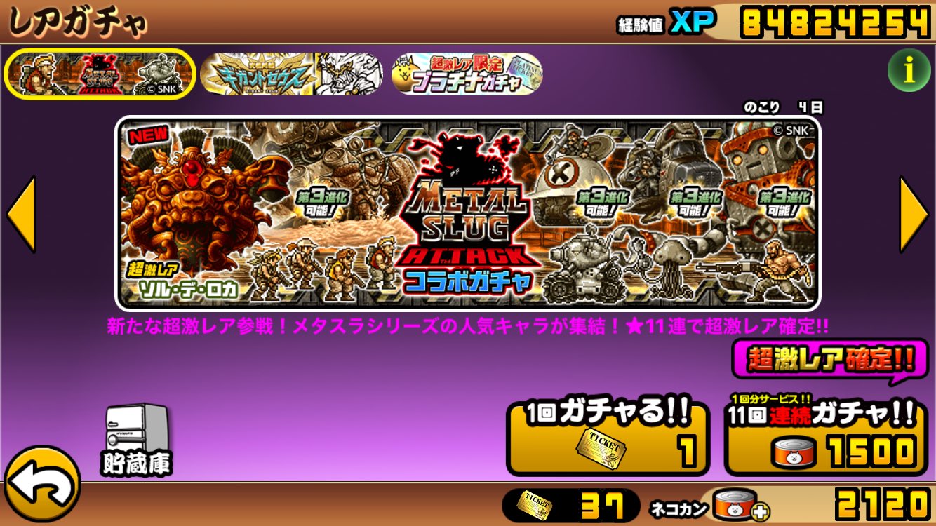 にゃんこ メタルスラッグにゃんこ ガチャにゃんこ ケリ姫にゃんこにゃんこ onにゃんこ X:にゃんこ メタルスラッグアタックコラボガチャ超激レア確定11連にゃ!にゃんこ 未所持はモーデン元帥、ソルデロカ。nyankoにゃんこ にゃんこ大戦争にゃんこ にゃんこ モーデン元帥、ソルデロカ両方出ましたにゃ!にゃんこ ありがとうございまポノス。にゃんこ t.coTpQ5X0Y13tにゃんこ にゃんこ Xにゃんこ ポノスとSNKプレイモア、『にゃんこ大戦争』×『メタルスラッグにゃんこ ディフェンス』を実施…『にゃんこ大戦争』側では限定レアキャラ「百太郎」GETのチャンスにゃんこ にゃんこ |