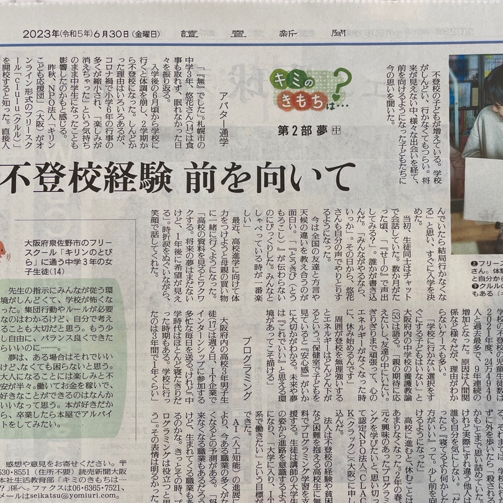 不 登校不 ニュース不 不登校の理由は「自分でもわからない」不 過去最多更新で注目される“特例校”とは?【急上昇ニュース岡山】不 |不 OHK不 岡山放送不 不登校中にゲームばかり、依存症の心配はない?家庭での適切な対処法不 |不 通信高校生ブログ不 独自】名門・筑波大付属小で「いじめ重大事態」不 児童が不登校の末…転校や退学を余儀なくされるケース相次ぐ不 |不 TBS不 NEWS不 DIG不 読売新聞に掲載頂きました!‐オンラインフリースクールclulu、フリースクールキリンのとびら【夢】‐不 -