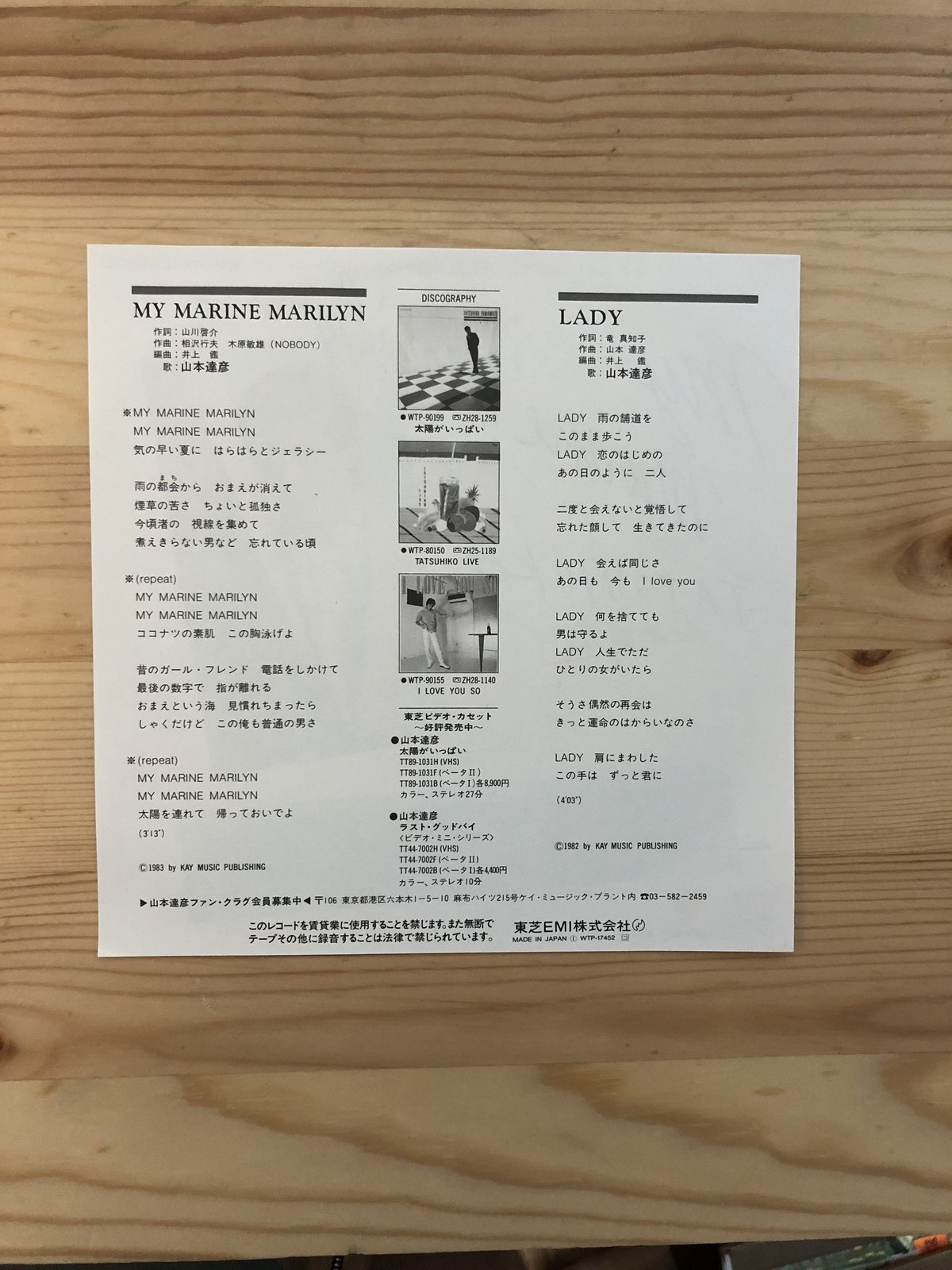 ![TK0698EP] EP 山本達彦 シングル4枚セット「MY MARINE MARILYN」「夢より苦しく」「ロンリー・ジャーニー」「嘘の台詞」CITY POP 名曲 の商品詳細 | JDirectItems Auction | One Map by FROM JAPAN](https://i0.wp.com/auctions.c.yimg.jp/images.auctions.yahoo.co.jp/image/dr000/auc0407/users/e789c8b8e818ab3bb42f03f1d25444257ec8f0f3/i-img1124x769-1690445163rabde21930466.jpg?ssl=1)