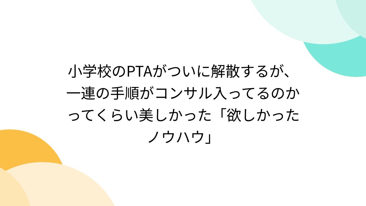 ![小学校のPTAがついに解散するが、一連の手順がコンサル入ってるのかってくらい美しかった「欲しかったノウハウ」 (2ページ目) - Togetter [トゥギャッター]](https://i0.wp.com/s.tgstc.com/ogp3/722c0fbdb8bb853847a4e6a32112930c-1200x675.jpeg?ssl=1)