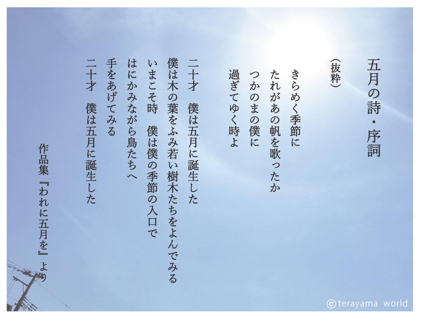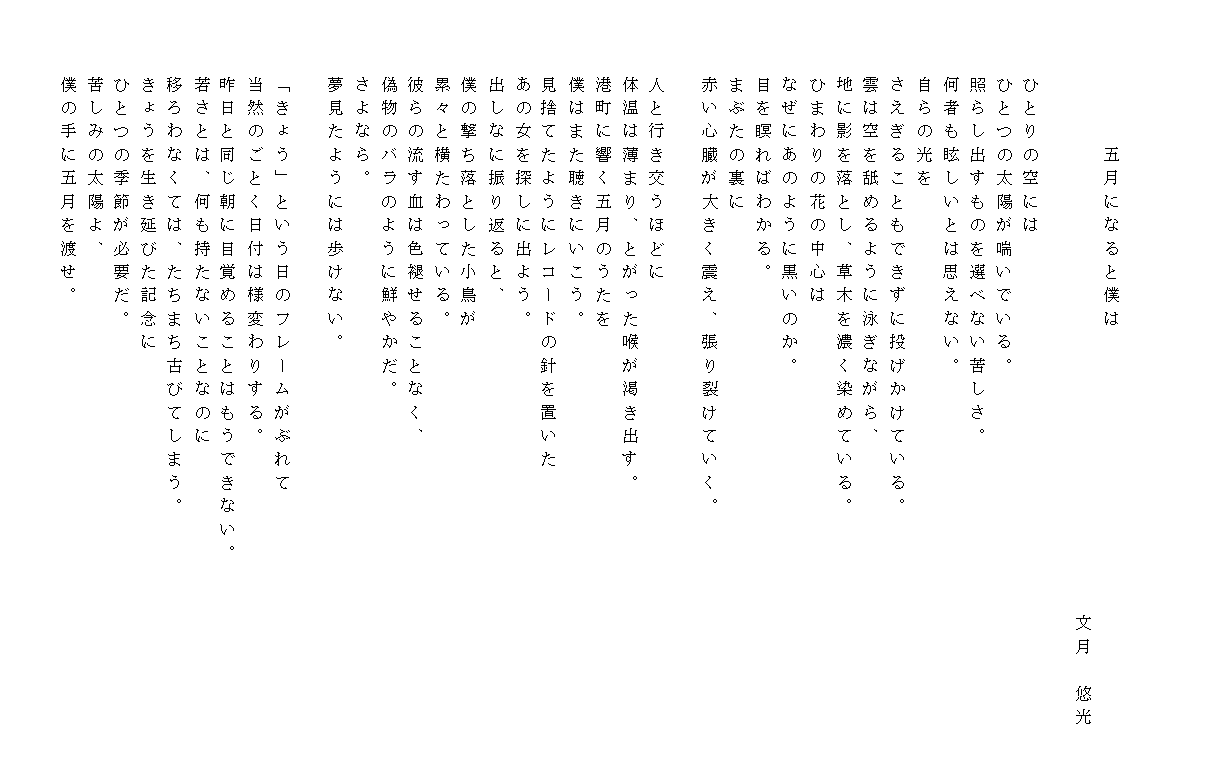 5 月5 の5 詩5 須永博士カレンダー5月の詩5 -5 須永博士美術館スタッフブログ5 須永博士カレンダー5月の詩5 -5 須永博士美術館スタッフブログ5 詩5 ・さよなら大型連休5 この詩を書き上げたのは令和6年5月6日午後7時15分。あと数時間で日付は変わり朝は来る。大型連休は静かに去ってゆく...。5 5 今は雨模様であるがせめて明日は予報通り晴れてほしい。5 思潮社5 現代詩手帖5 »5 現代詩手帖2019年5月号が27日に発売になります。